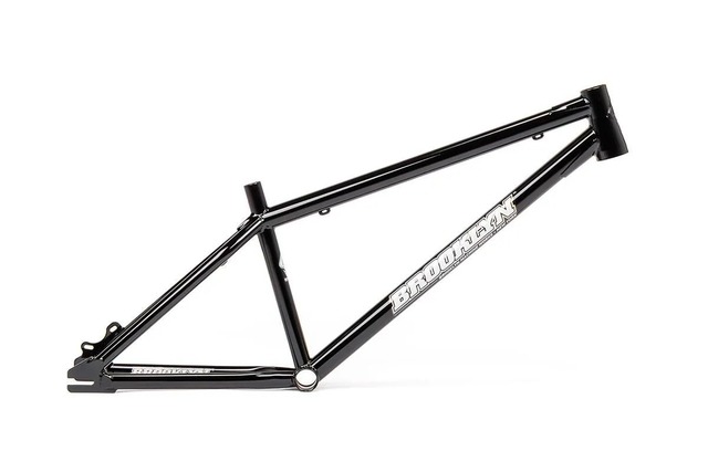 最新BROOKLYN MACHINE WORKSのPARK V4フレーム。 V3との大きな違いはヘッドパイプにテーパーパイプを採用し、最新のサスペンションフォークを 装着可能です。 またV3以前にはなかったヘッドパイプ、ダウンチューブ後端、BB裏には刻印が施されてます。 パーツ構成的にはフロントホイールには後輪と同じく24インチ、トラベル量100mm前後のサスペンションフォークを取り付けることがおすすめ。 設定されている本来のジオメトリーを崩さず乗り味も良好。 ⚫︎ホイールサイズ : 24" ⚫︎トップチューブ長 : 24.5" ⚫︎シートチューブ長 : 331mm ⚫︎チェーンステイ長 : 13.75” ⚫︎ヘッド角 : 70° ⚫︎シート角 : 72° ⚫︎BBハイト : +12.7mm ⚫︎BB : 68mm EURO ⚫︎シートポスト径 : Φ27.2 ⚫︎シートチューブ外径 : Φ29.8 ⚫︎ヘッド : UPPER1-1/8″インテグラルベアリング外径42mm LOWER 1.5″インテグラルベアリング外径52mm ⚫︎O.L.D : 135mm ⚫︎リアブレーキ規格 : インターナショナルスタンダード ⚫︎重量 : 2.6kg