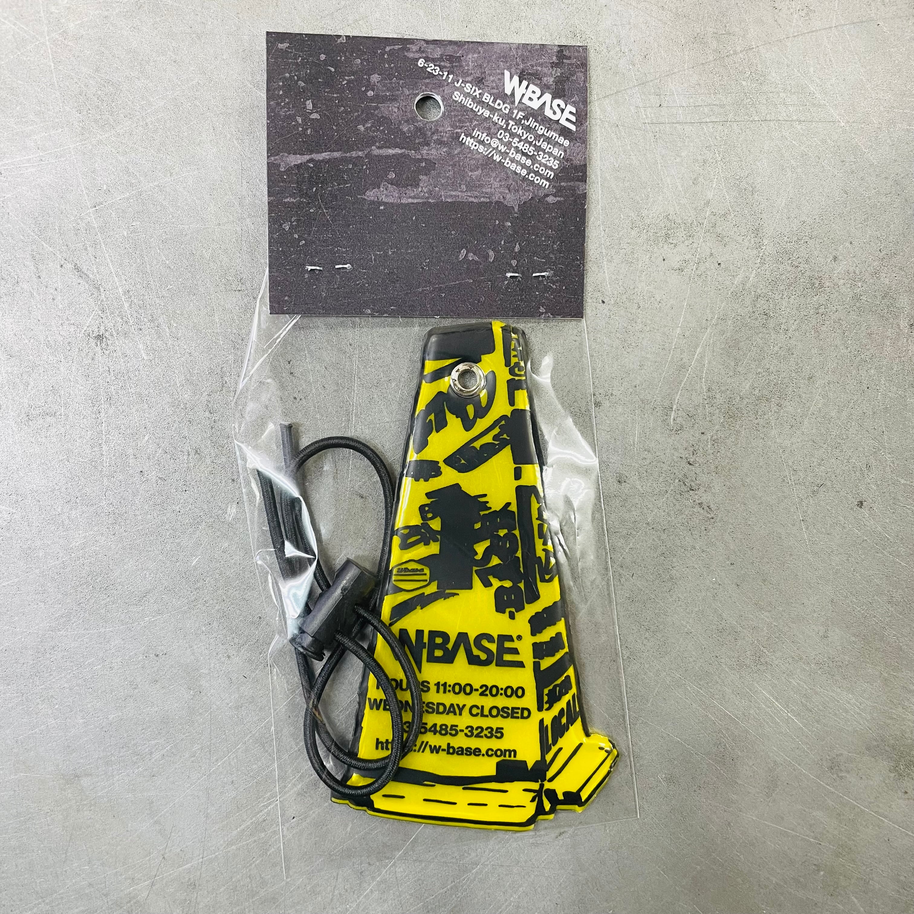 セーフティカラーのイエローリフレクターにブラックプリントを施した、視認性とデザイン性を兼ね備えたW-BASEオリジナルリフレクター。
