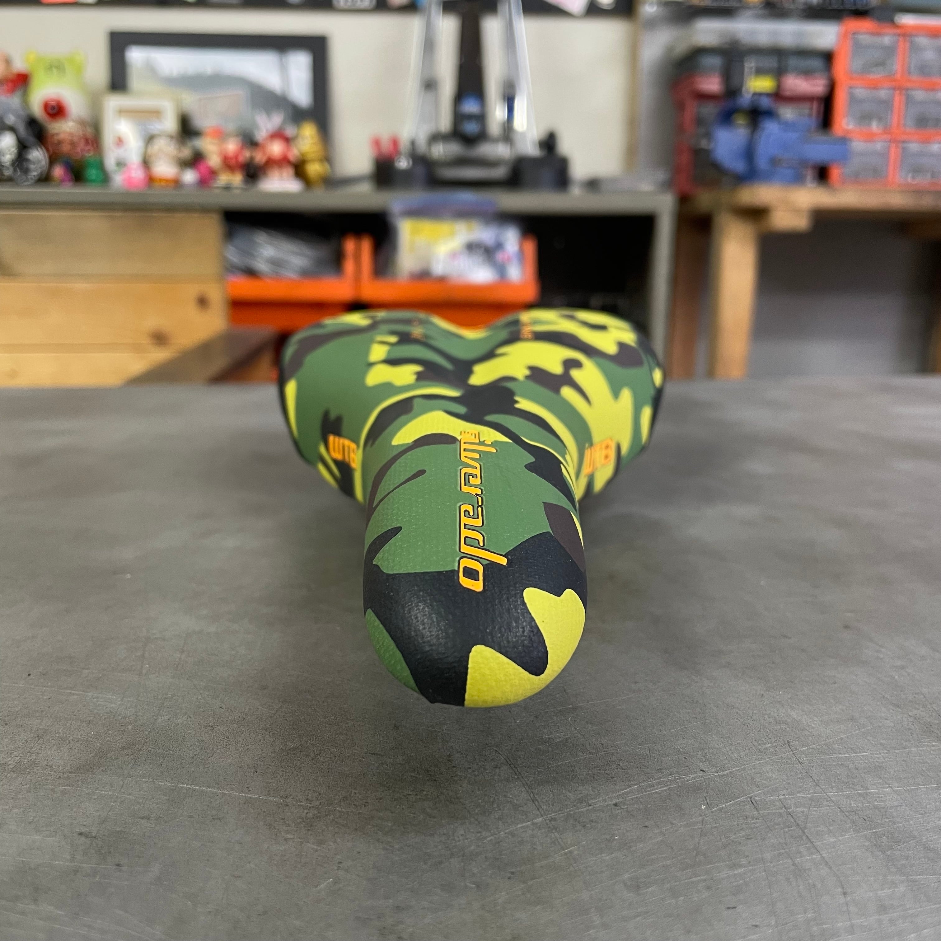 みんな大好きウッドランドカモにオレンジのロゴでピリッとアクセントを効かせました。
